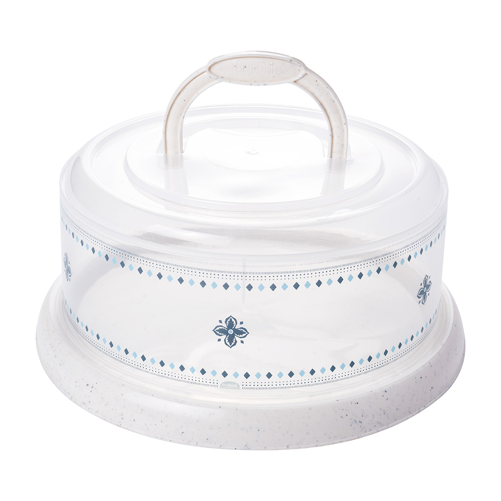 A boleira com alça veio para facilitar seu dia a dia, agora você pode armazenar e transportar seus bolos, tortas e doces sem medo, pois ela conta com uma base com rosca e uma tampa com alça, assim trazendo mais segurança na hora do transporte.