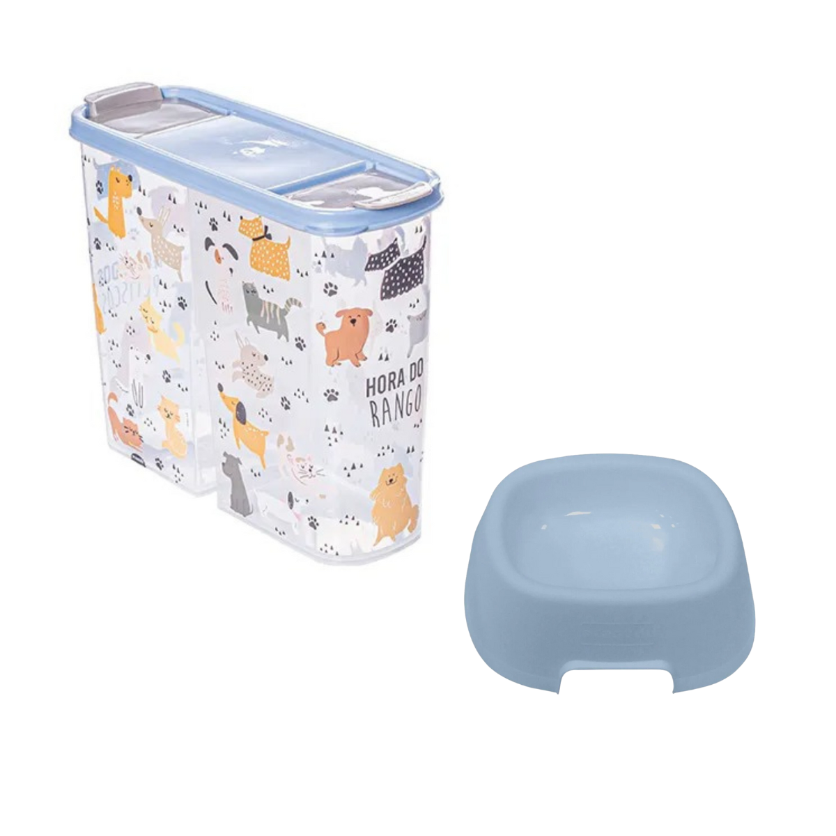 KIT GUARDA TUDO DUETO RET ALTO PET M 2,4L E COMEDOURO M 330ML